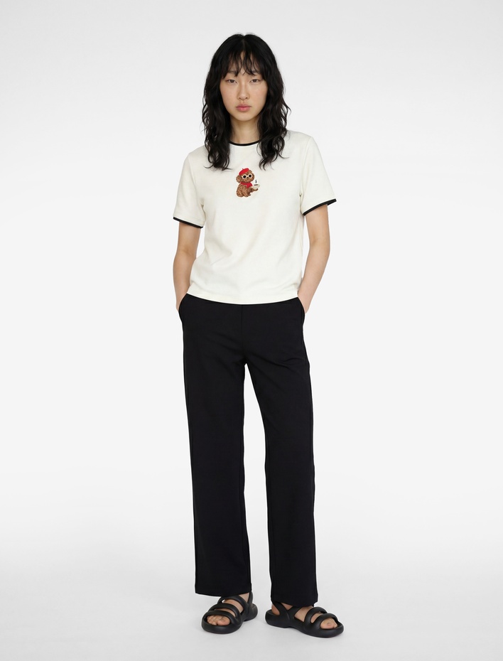 Slim Fit Kısa Kollu Bisiklet Yaka Modal Karışımlı Köpek Nakışlı Tişört Sepete Ekle