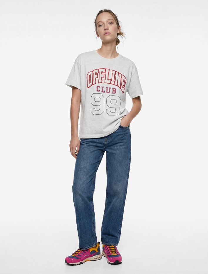 Rahat Kalıp Kısa Kollu Bisiklet Yaka Baskılı Tişört Sepete Ekle