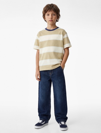 Erkek Çocuk Pamuklu Bisiklet Yaka Kısa Kollu Çizgili Tişört