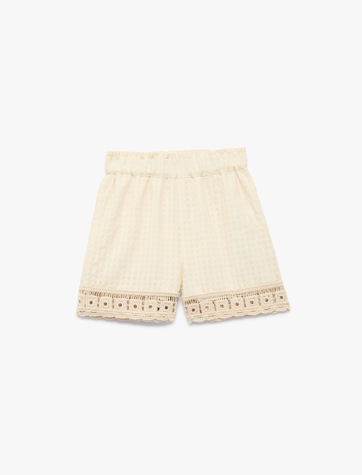 Pamuklu Desenli Beli Lastikli Dantel Detaylı Mini Şort Sepete Ekle