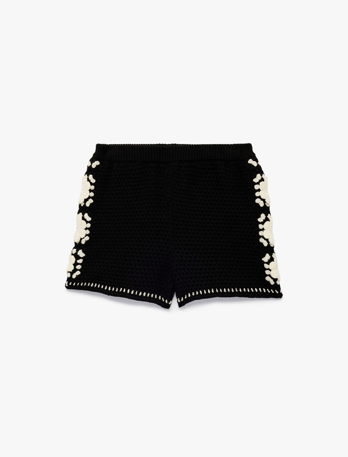 Kız Çocuk Pamuklu Beli Lastikli Desenli Triko Şort