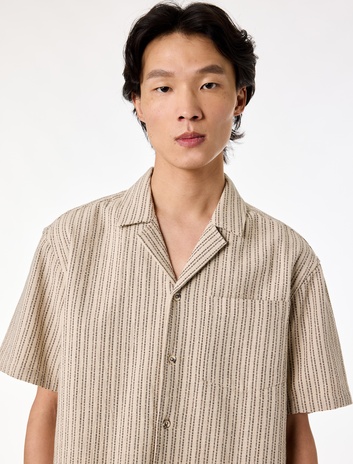 Regular Fit Kısa Kollu Ajurlu Devrik Yaka Çizgili Gömlek Sepete Ekle