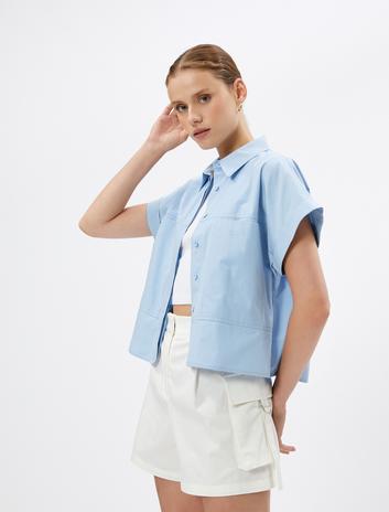 Kısa Kollu Gömlek Kargo Cepli Düğmeli Pamuklu