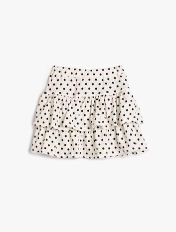 Kız Çocuk Fırfırlı Mini Etek Puantiyeli Beli Lastikli Rahat Kesim