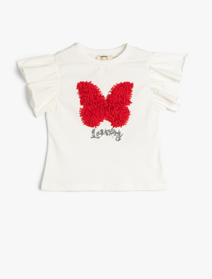 Tişört Bisiklet Yaka Kısa Kollu Kelebek Aplike Detaylı Pamuklu Sepete Ekle