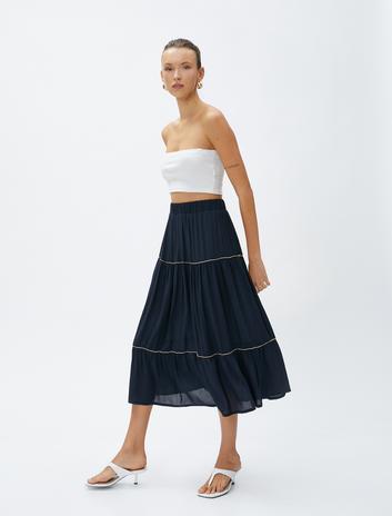 Katlı Kloş Etek Midi Boy Zincir Detaylı Sepete Ekle