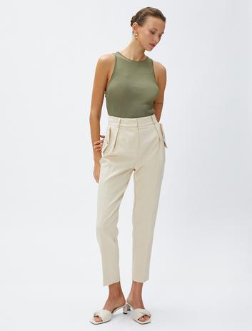 Crop Pantolon Cep Detaylı Dar Paça Yüksek Bel Sepete Ekle