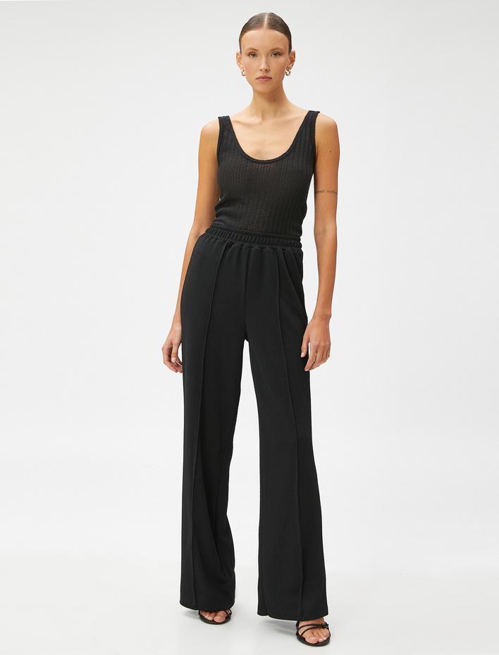 Bol Paça Pantolon Nervürlü Beli Lastikli