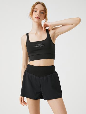 Spor Şort Slogan Baskılı Beli Bağcıklı Cep Detaylı