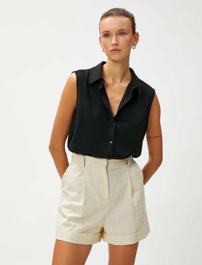 Mini Şort Beli Bağcıklı Keten Karışımlı Sepete Ekle