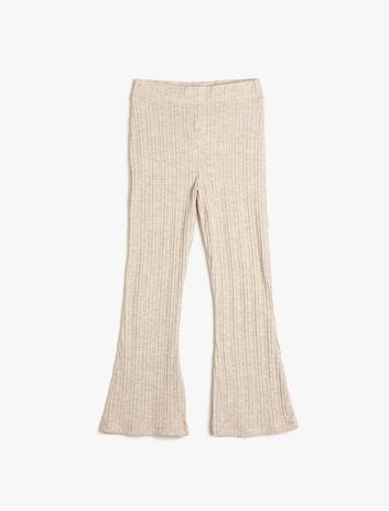 Kız Çocuk İspanyol Paça Tayt Pantolon Yırtmaç Detaylı Beli Lastikli Fitilli