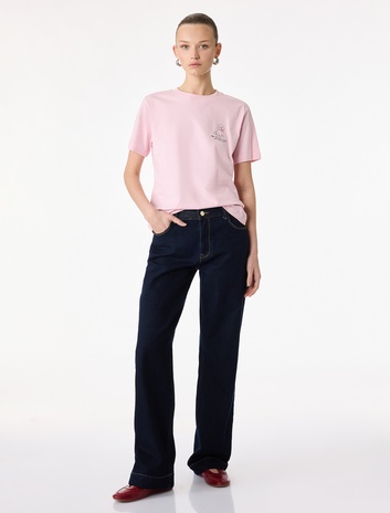 Regular Fit Tavşan Nakış Detaylı Kısa Kollu V Yaka Tişört