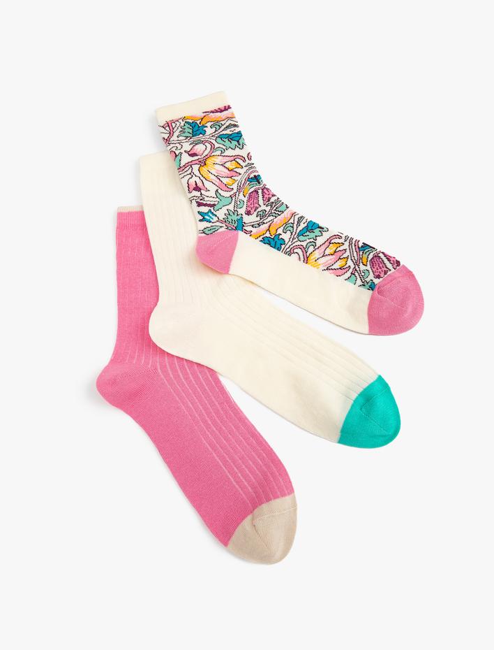 Kadın 3'lü Çiçekli Soket Çorap Seti