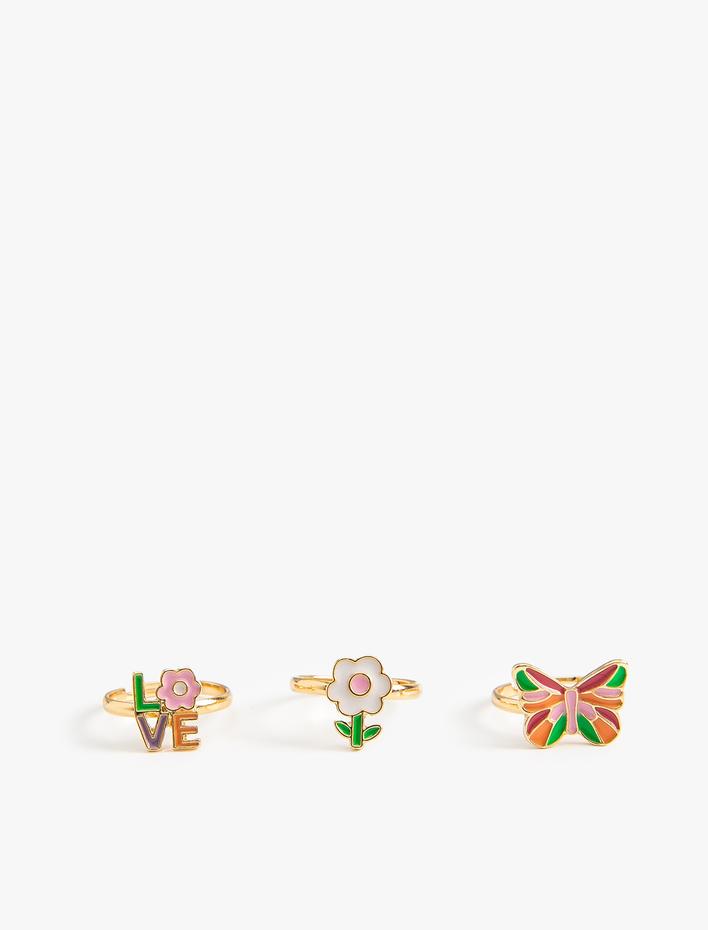 Kelebek ve Çiçekli Yüzük Seti 3'lü Çok Renkli Çelik Karışımlı Sepete Ekle