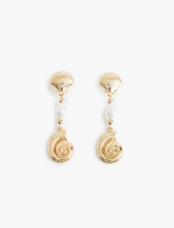 Kadın İnci Detaylı Sallantılı Deniz Kabuğu Küpe