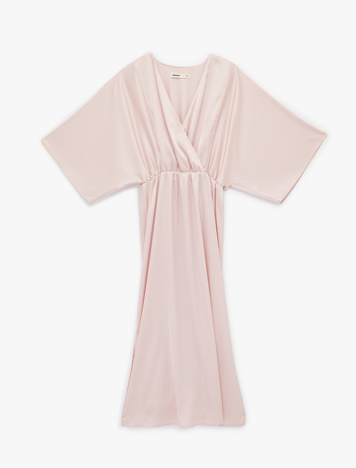 Aerobin Kumaş Bol Kalıp 3/4 Kol Uzun Kruvaze Elbise Sepete Ekle