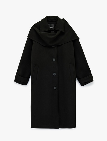 Düğmeli Dik Yaka Uzun Kollu Oversize Kaşe Kaban Sepete Ekle