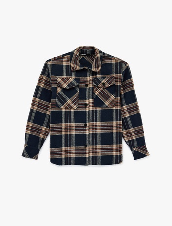 Kapaklı Cepli Düğmeli Uzun Kollu Ekose Gömlek Ceket Sepete Ekle