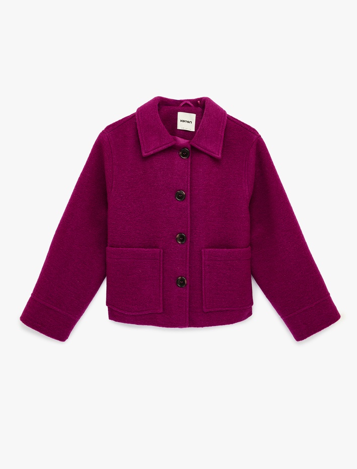 Cepli Düğmeli Uzun Kollu Kısa Kaşe Kaban Sepete Ekle