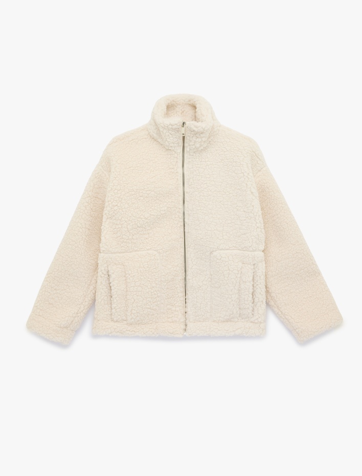 Fermuarlı Dik Yaka Uzun Kollu Peluş Ceket Sepete Ekle