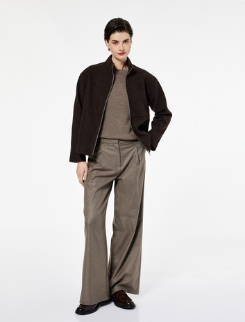 Cepli Dik Yaka Uzun Kollu Fermuarlı Kaşe Ceket