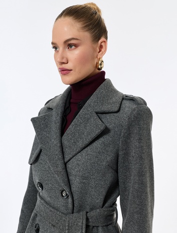 Trenç Kaban Kaşe Uzun Kollu Kruvaze Kemerli