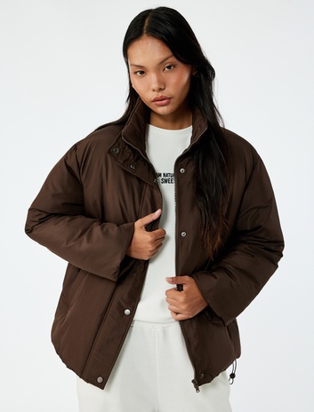 Dik Yaka Çıtçıt Düğmeli Cepli Uzun Kollu Rahat Kalıp Anorak Ceket Sepete Ekle