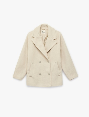 Çıkarılabilir Suni Kürk Yaka Kaban Oversize Kaşe Uzun Kollu Cepli Düğmeli Sepete Ekle