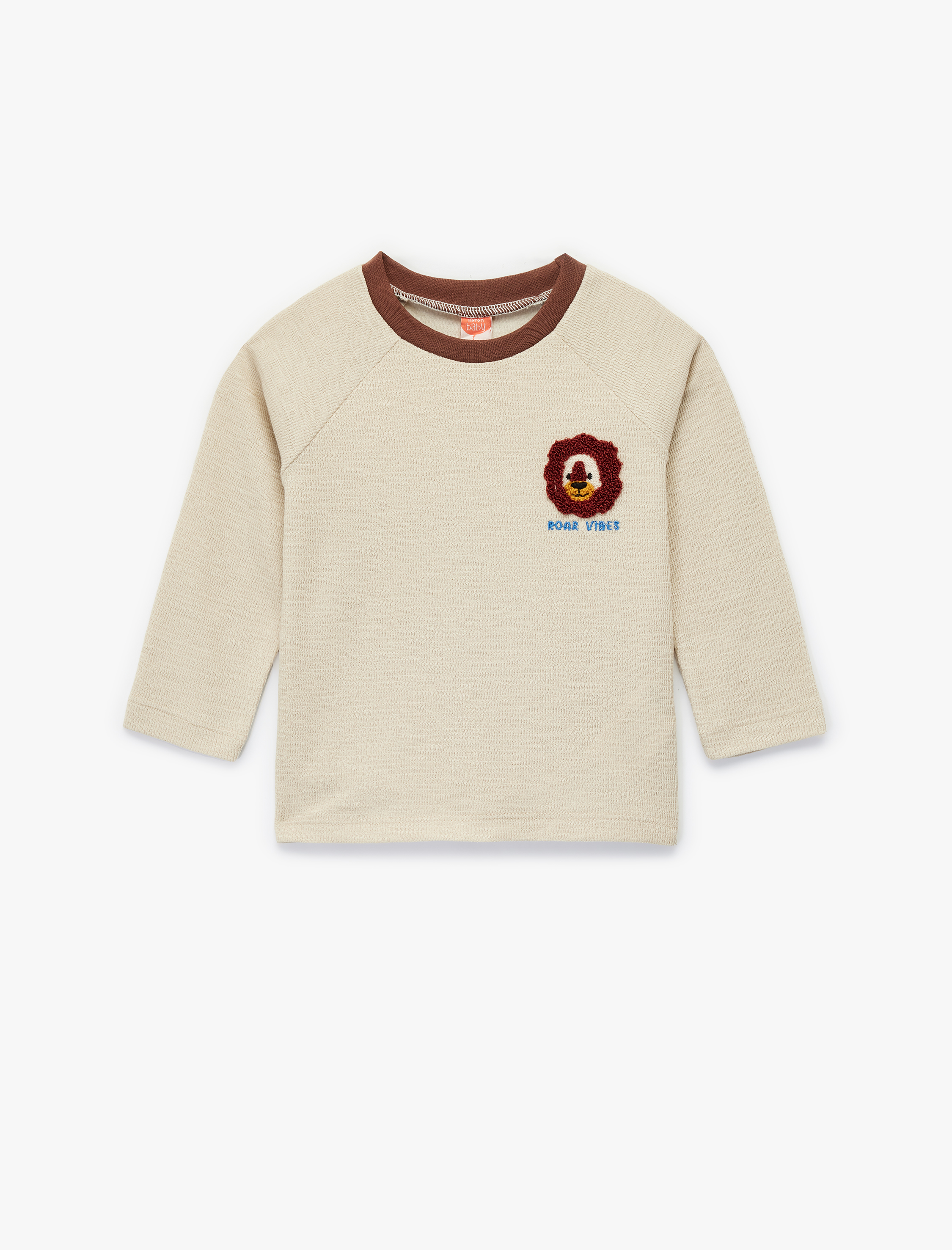 Erkek Bebek Uzun Kollu Bisiklet Yaka Aslan Nakışlı Pamuklu Tişört