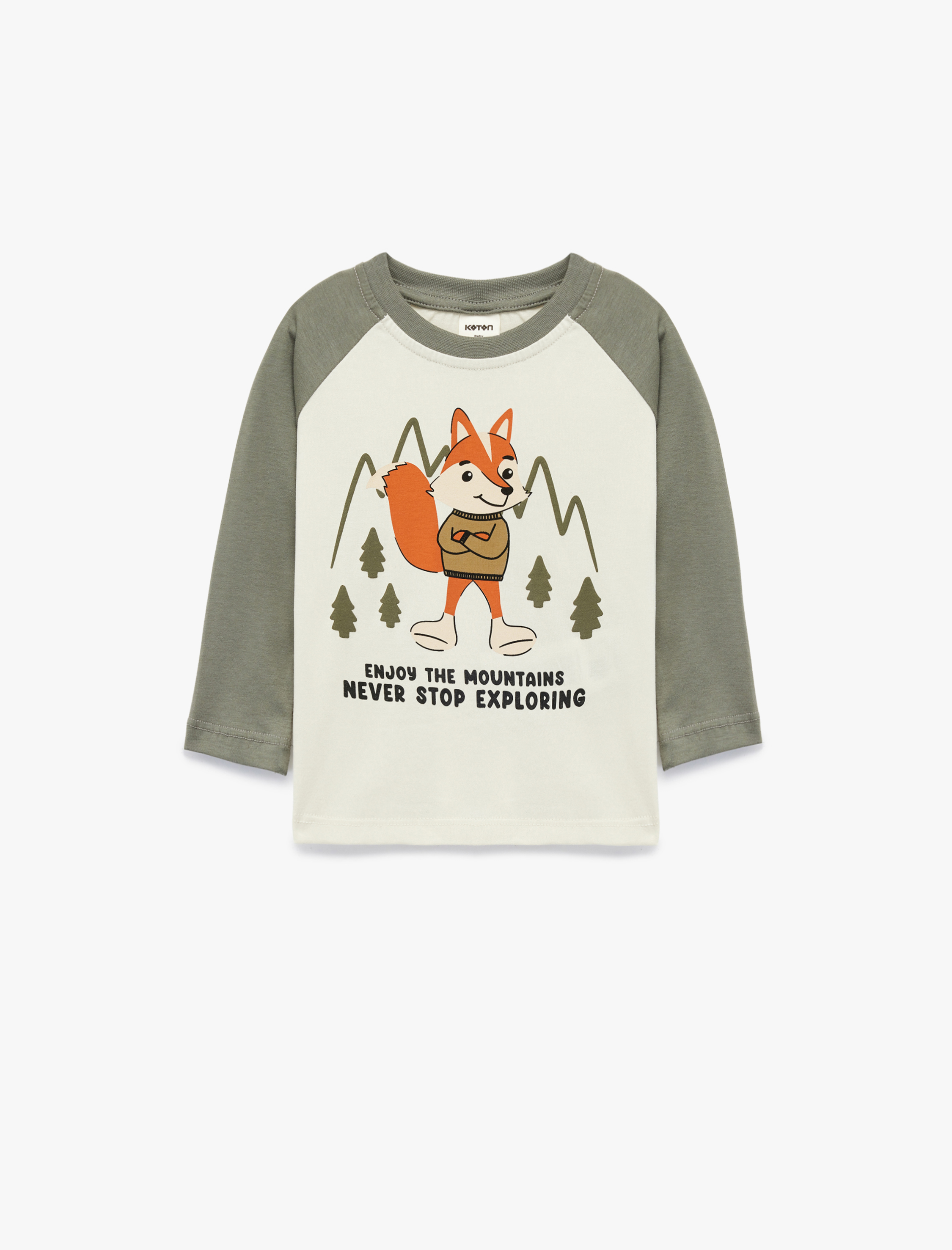Erkek Bebek Uzun Kollu Bisiklet Yaka Baskılı Pamuklu Tişört