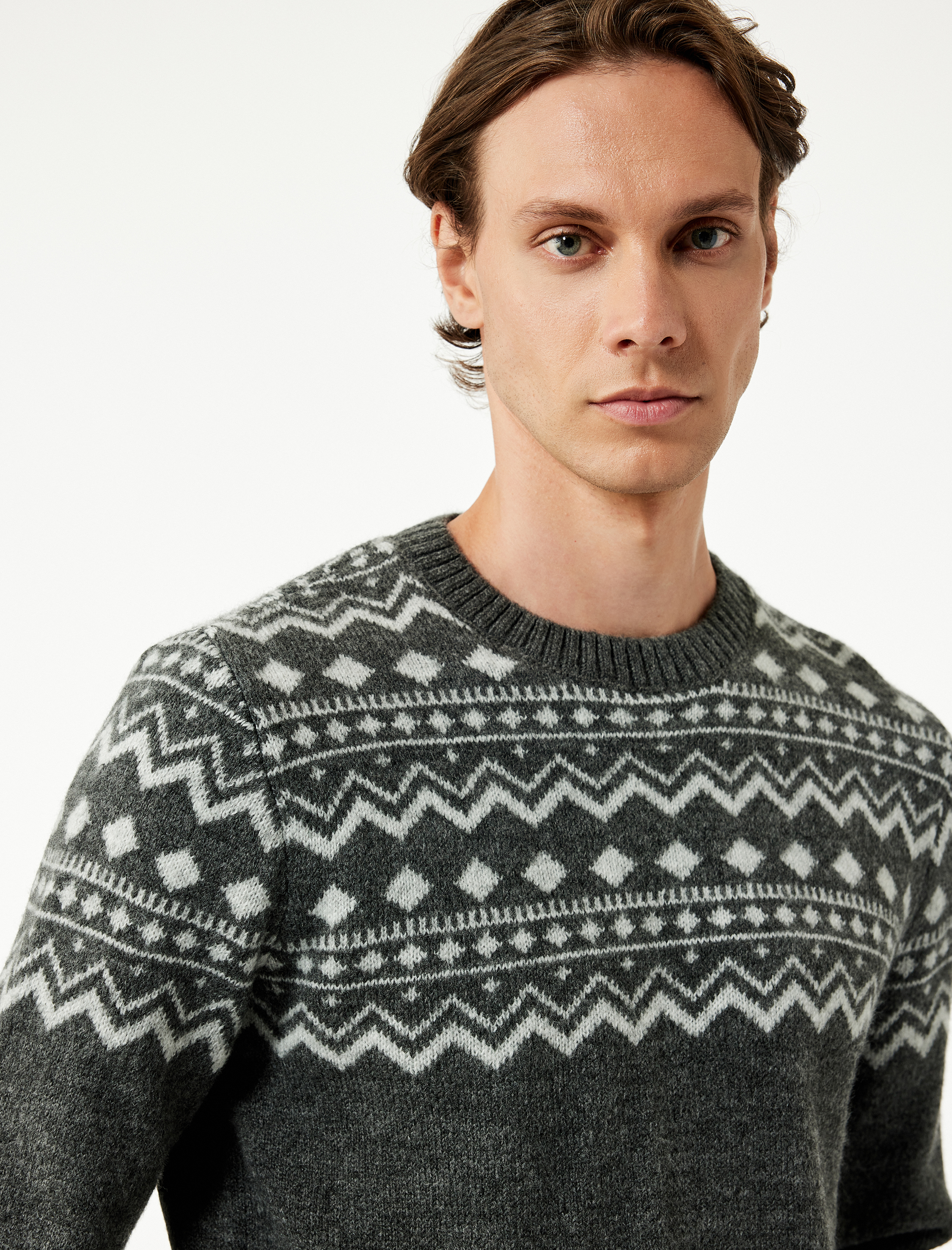 Uzun Kollu Bisiklet Yaka Desenli Triko Kazak