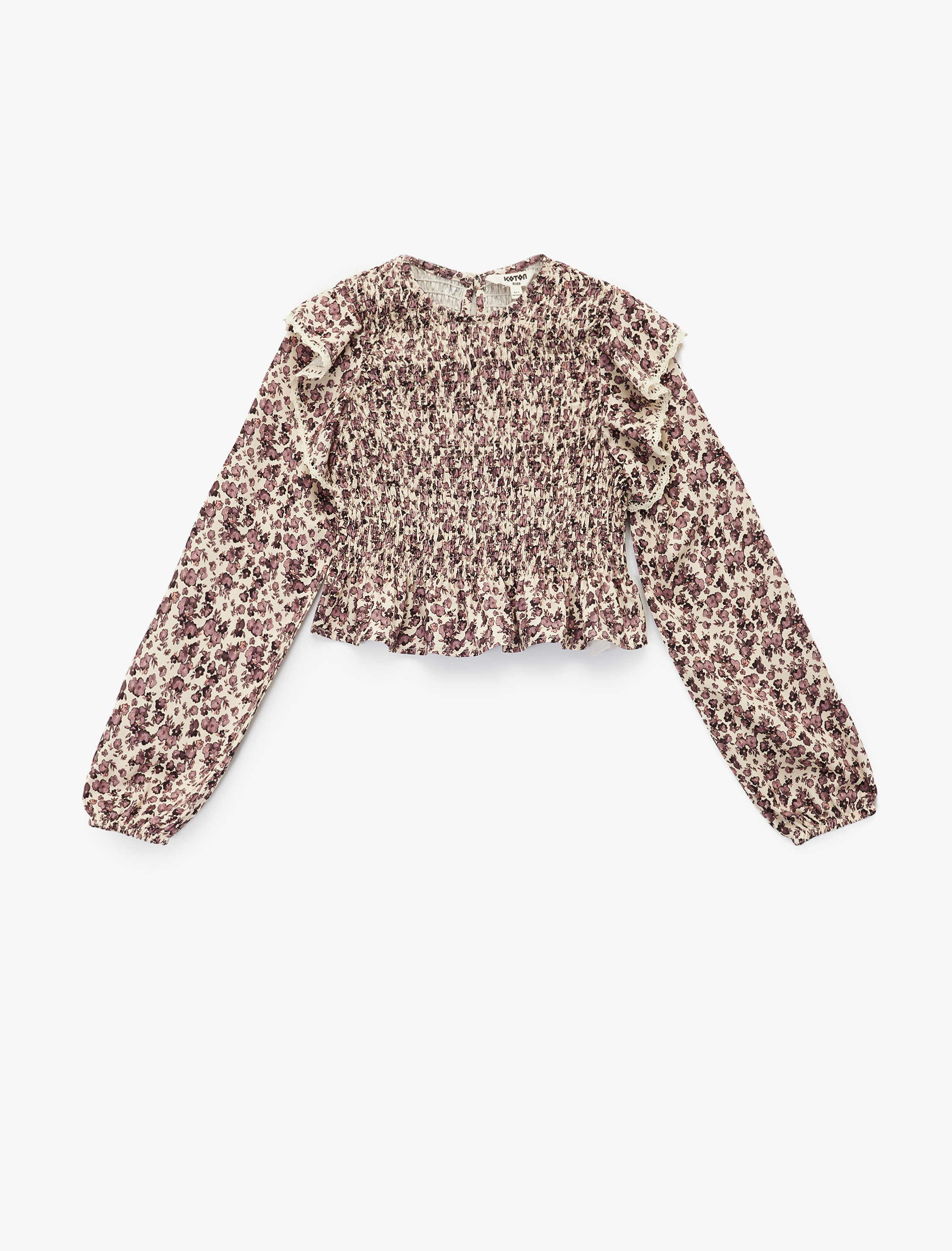 Kız Çocuk Uzun Kollu Bisiklet Yaka Gipeli Çiçekli Viskon Bluz