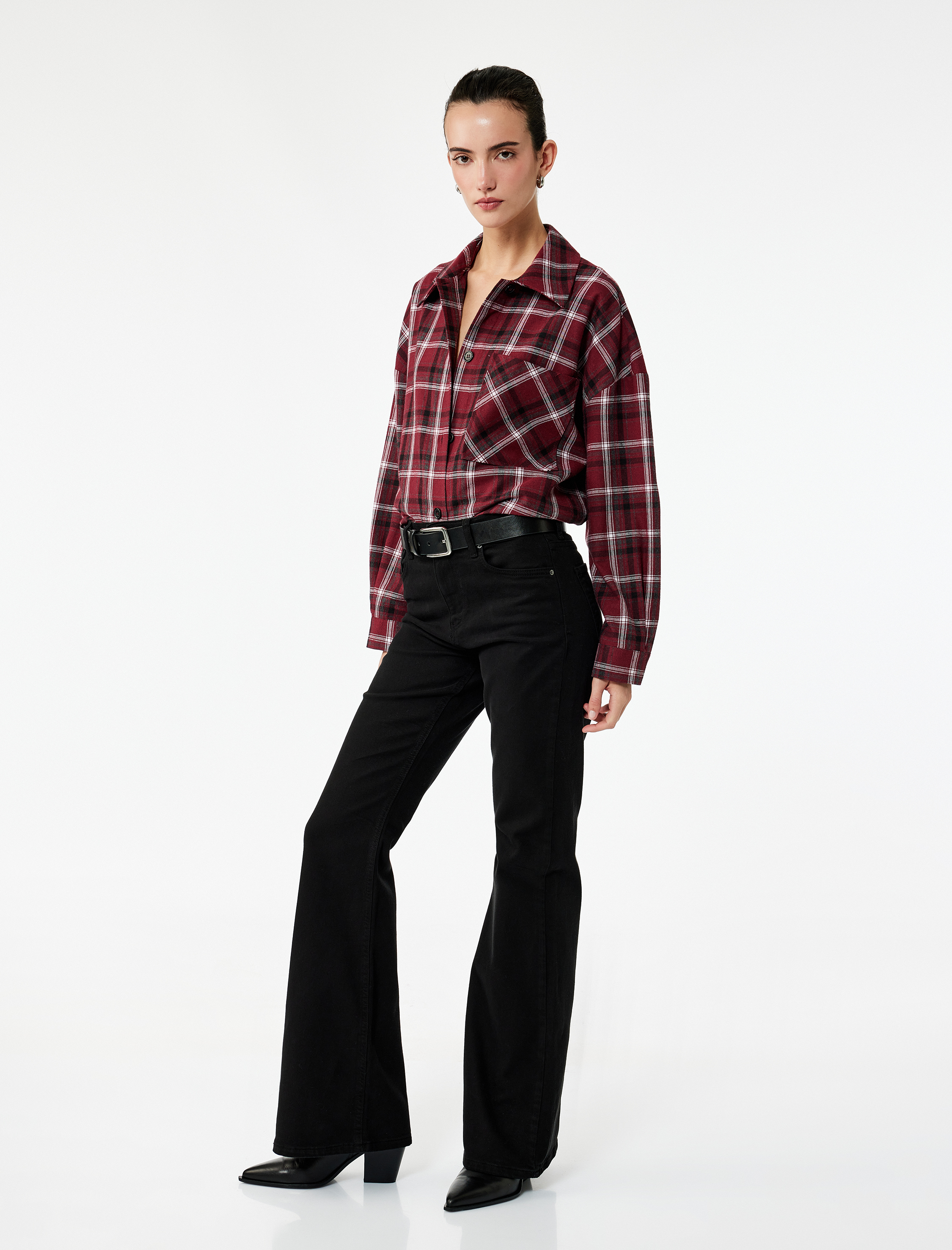 Uzun Kollu Cep Detaylı Ekose Oversize Gömlek Ceket