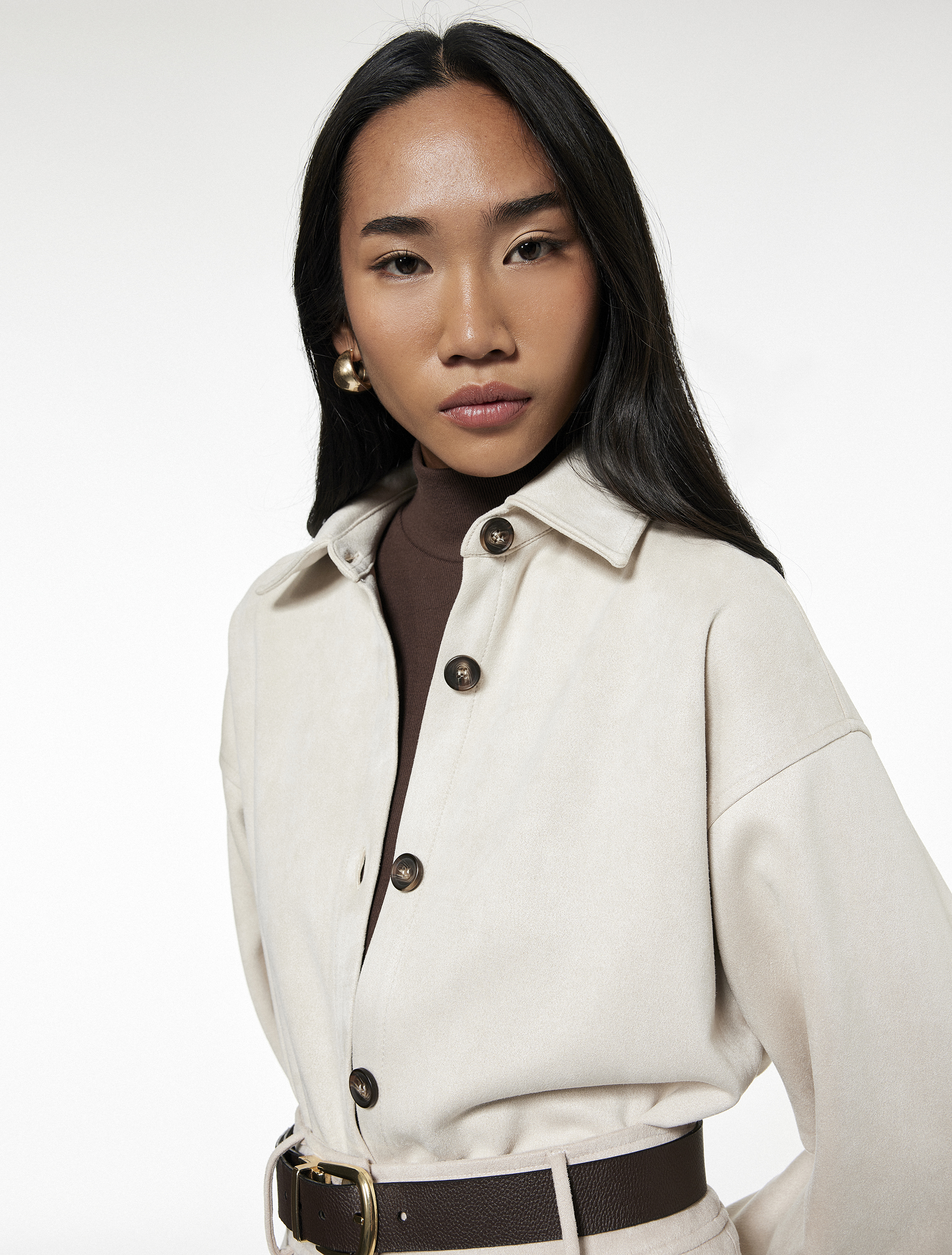 Uzun Kollu Düğmeli Suni Süet Gömlek Ceket