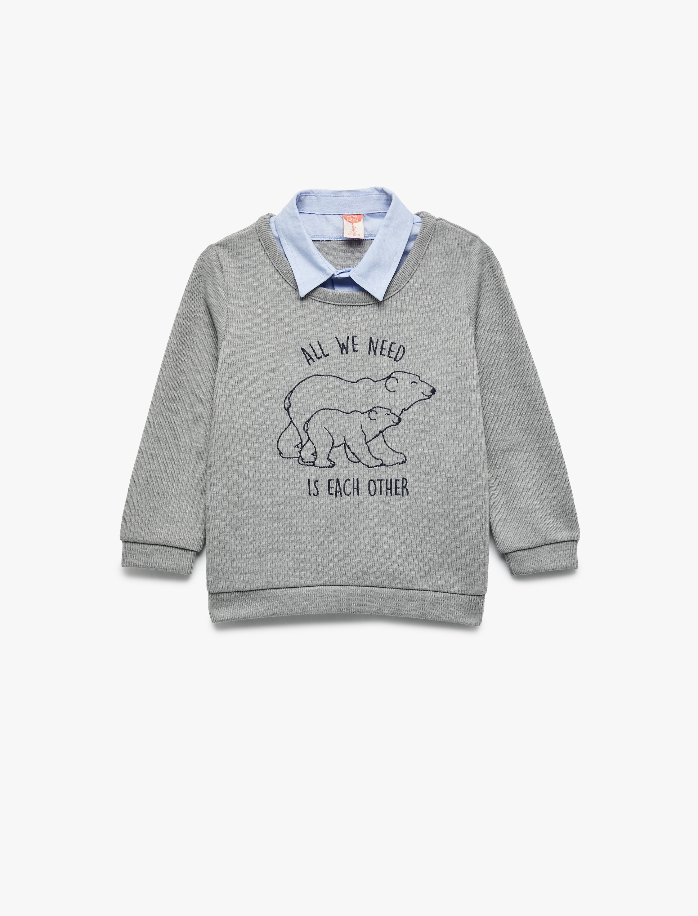 Erkek Bebek Uzun Kollu Gömlek Yaka Baskılı Sweatshirt  Erkek Bebek Uzun Kollu Gömlek Yaka Baskılı Sweatshirt  Erkek Bebek Uzun Kollu Gömlek Yaka Baskılı Sweatshirt