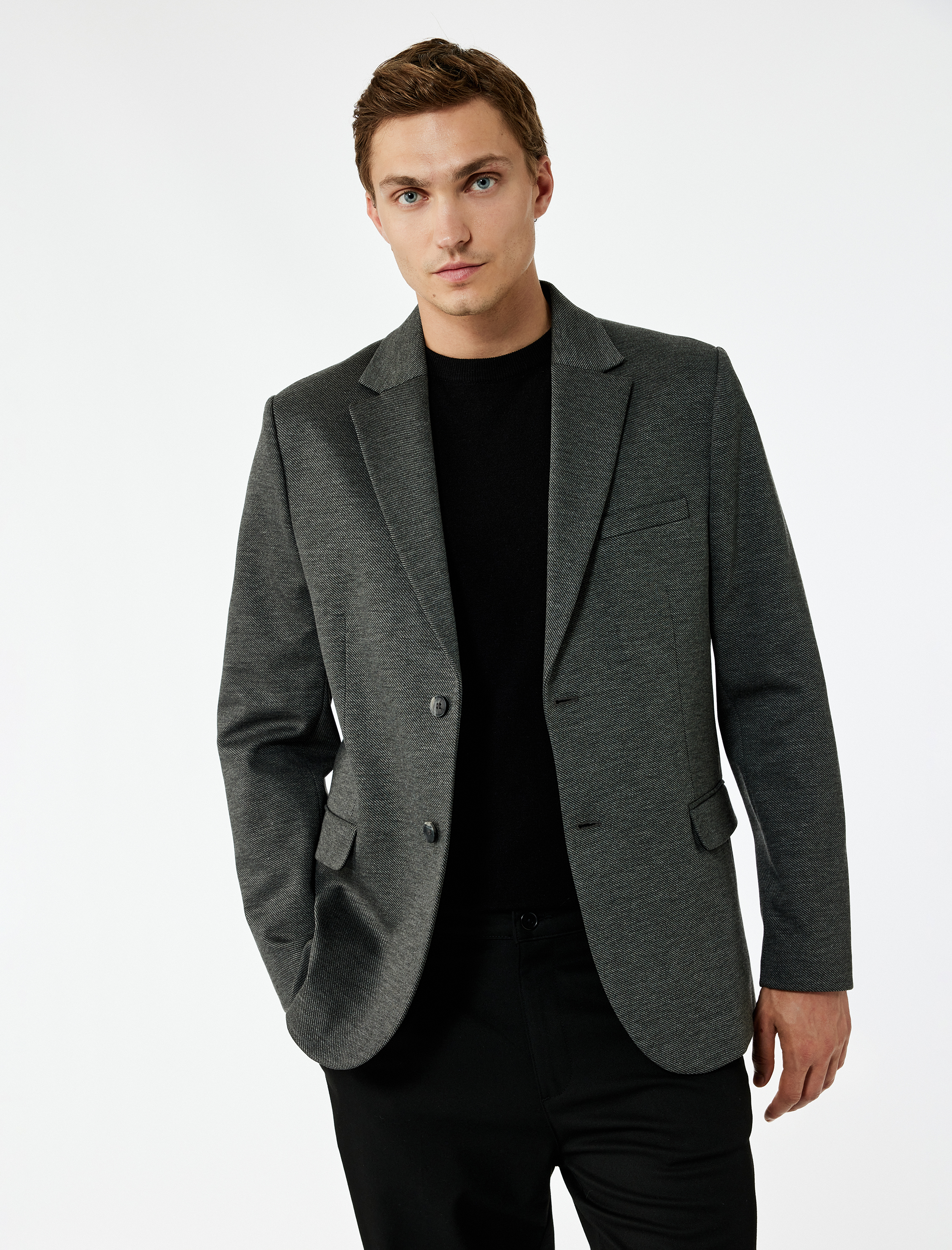 Uzun Kollu Kapaklı Cep Detaylı Düğmeli Slim Fit Mono Yaka Blazer Ceket