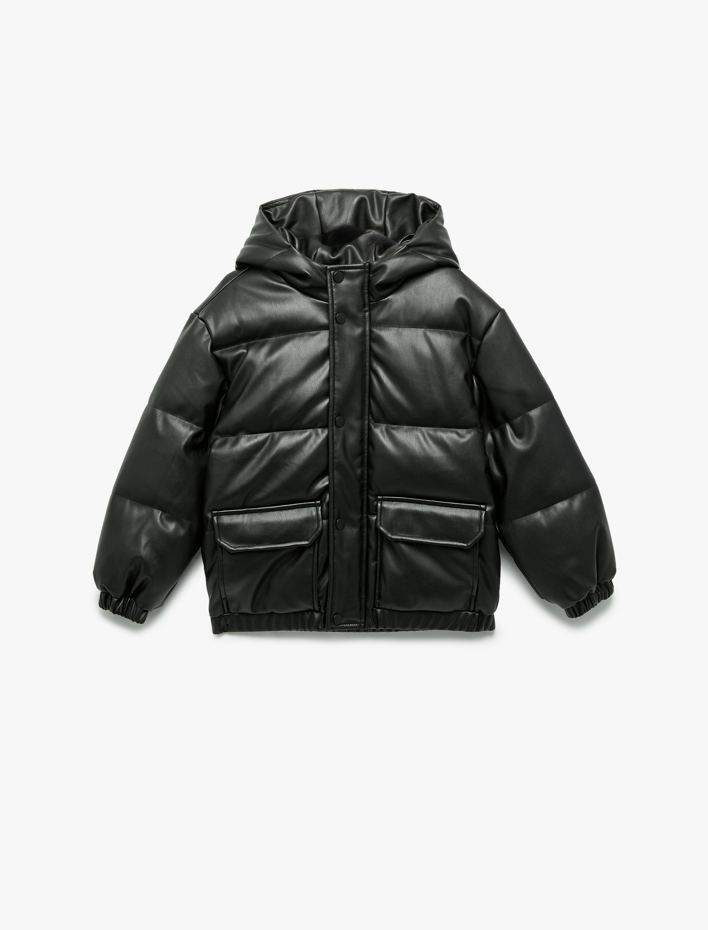 Erkek Çocuk Uzun Kollu Kapşonlu Suni Deri Ceket