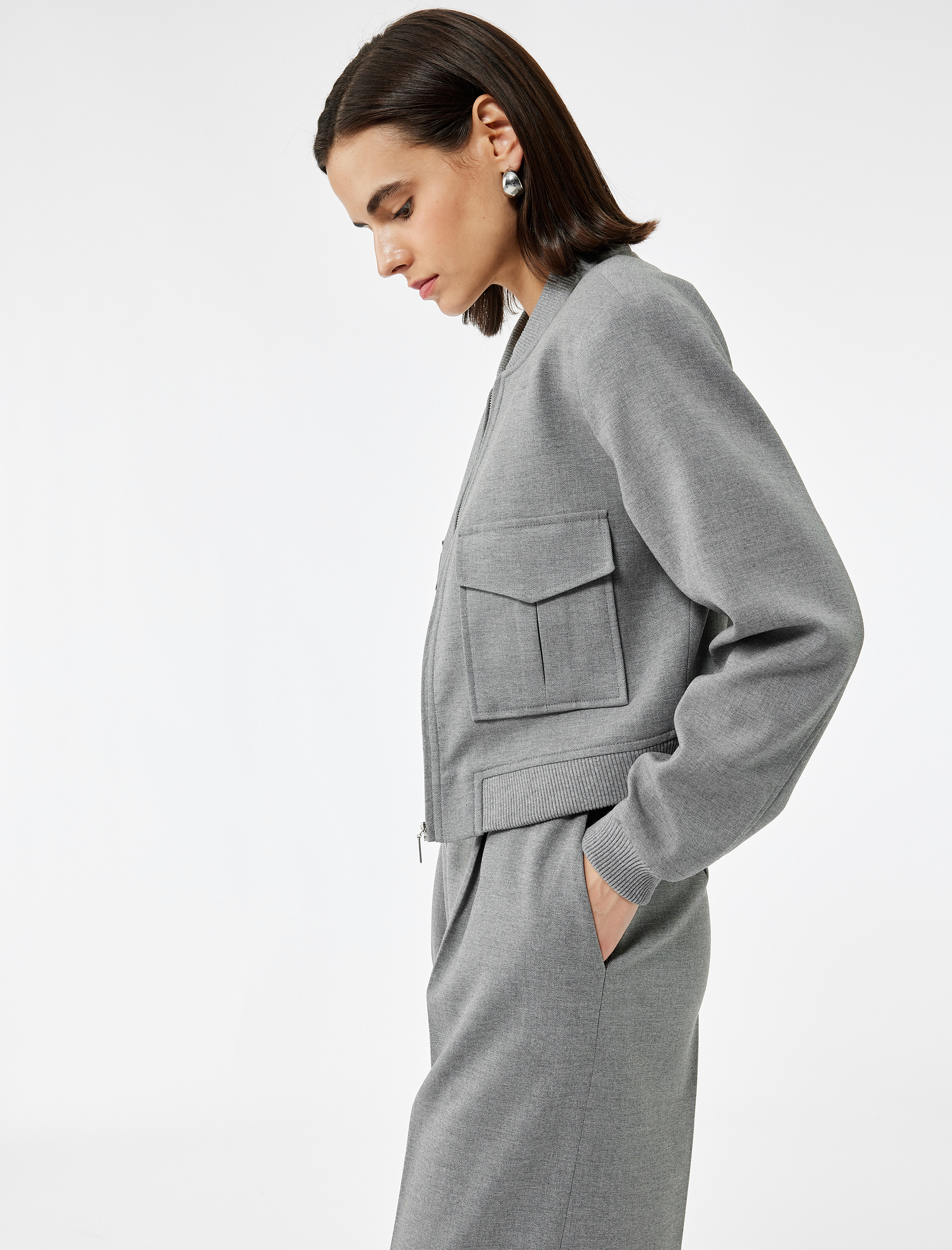 Uzun Kollu Kolej Yaka Cep Detaylı Bomber Ceket