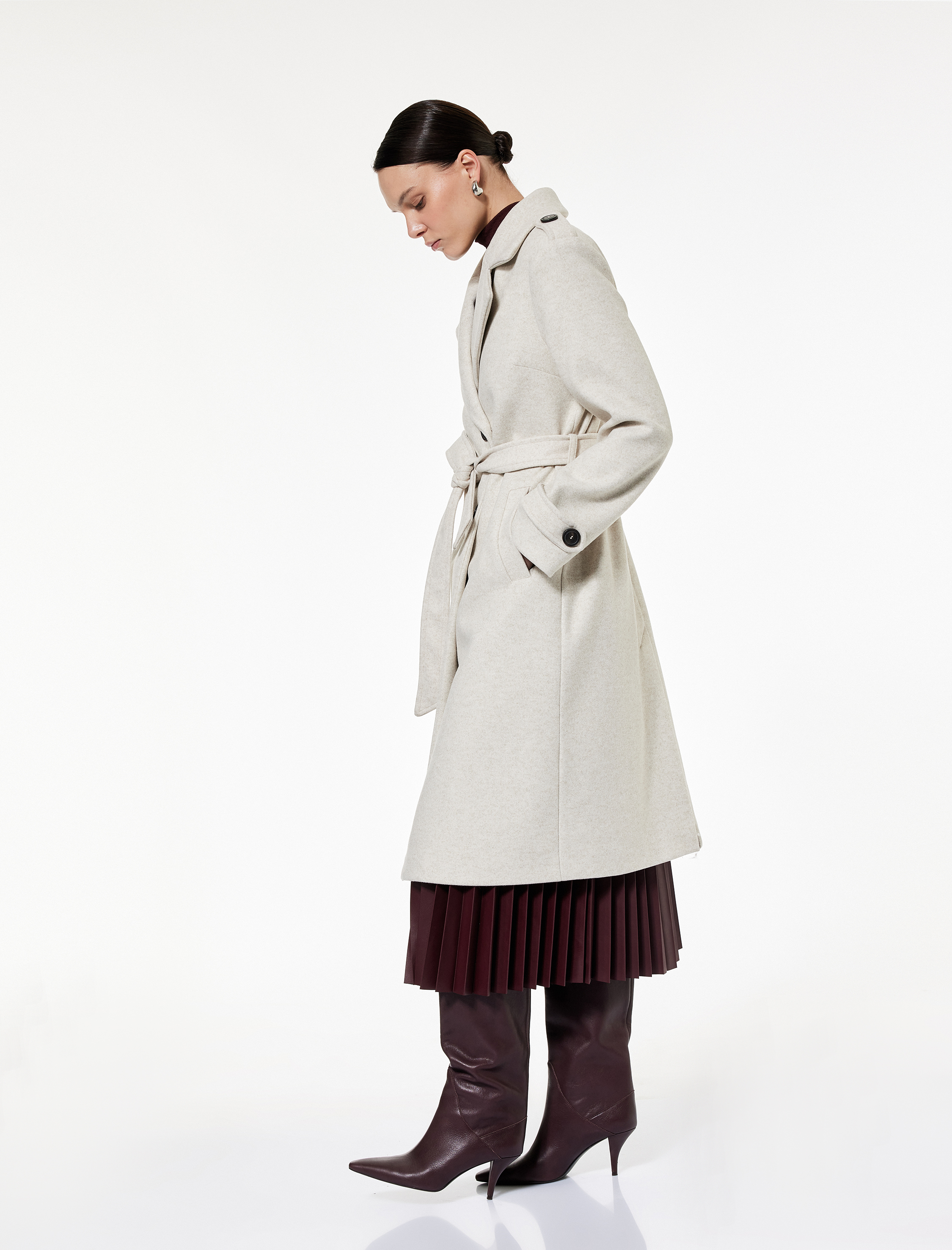 Uzun Kollu Kruvaze Kemerli Uzun Kaşe Kaban