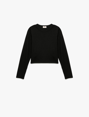 Pamuklu Uzun Kollu Bisiklet Yaka Crop Tişört Sepete Ekle