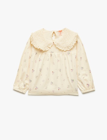 Pamuklu Uzun Kollu Çiçek Desenli Bebe Yaka Tişört Sepete Ekle