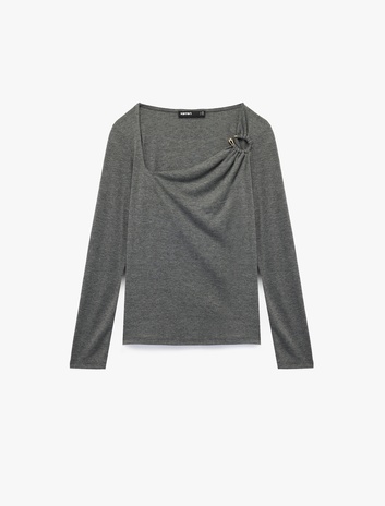 Slim Fit Aksesuar Detaylı Asimetrik Yaka Uzun Kollu Tişört Sepete Ekle