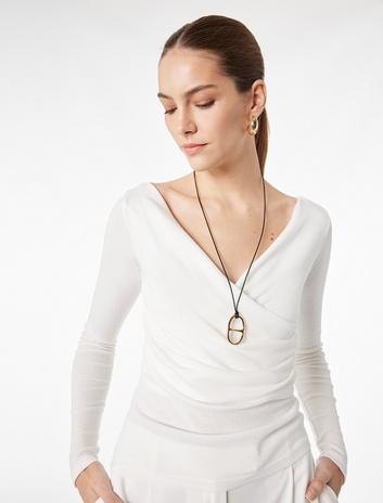 Slim Fit Drape Detaylı Uzun Kollu Kruvaze Tişört