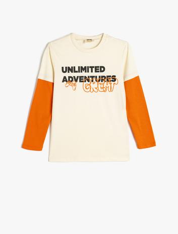 Erkek Çocuk Tişört Slogan Baskı Detaylı Uzun Kollu Bisiklet Yaka Pamuklu
