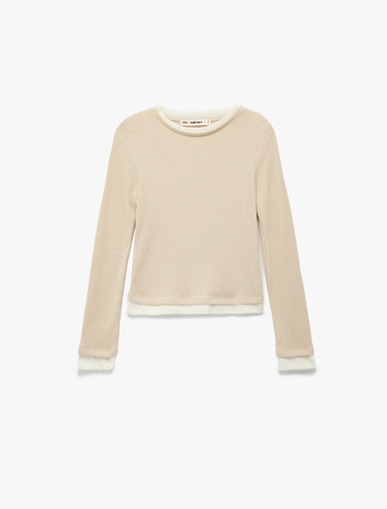 Slim Fit Uzun Kollu Yuvarlak Kayık Yaka Simli Tişört Sepete Ekle