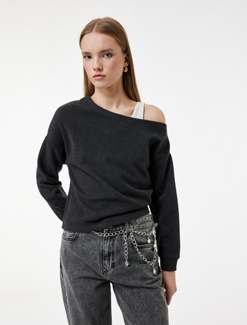 Viskon Karışımlı Kayık Yaka Omzu Açık Uzun Kollu Tişört Sepete Ekle