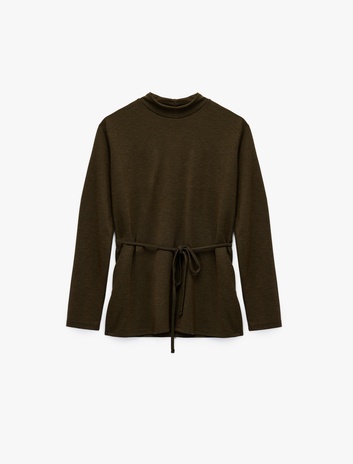 Slim Fit Uzun Kollu Hafif Dik Yaka Kemerli Tişört