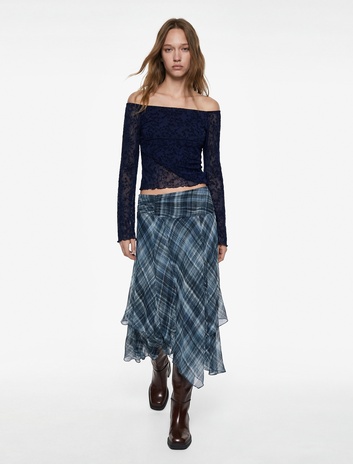 Asimetrik Kesim Astarlı Uzun Kollu Tül Tişört Sepete Ekle