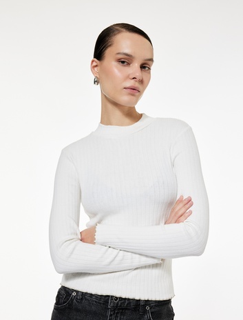 Koton X Zeynep Bastık - Uzun Kollu Yarı Transparan Ajurlu Dik Yaka Tişört