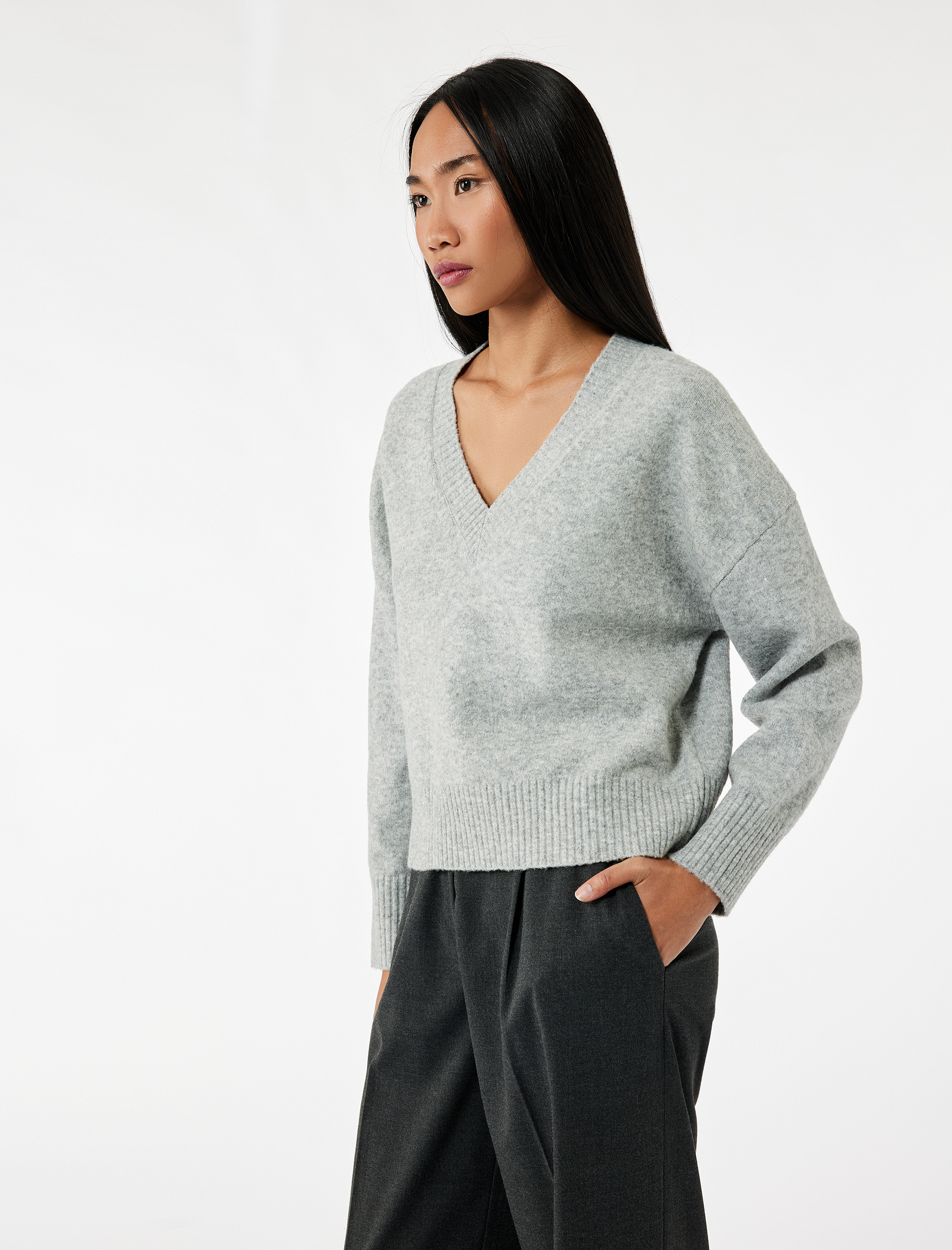 Uzun Kollu V Yaka Triko Kazak